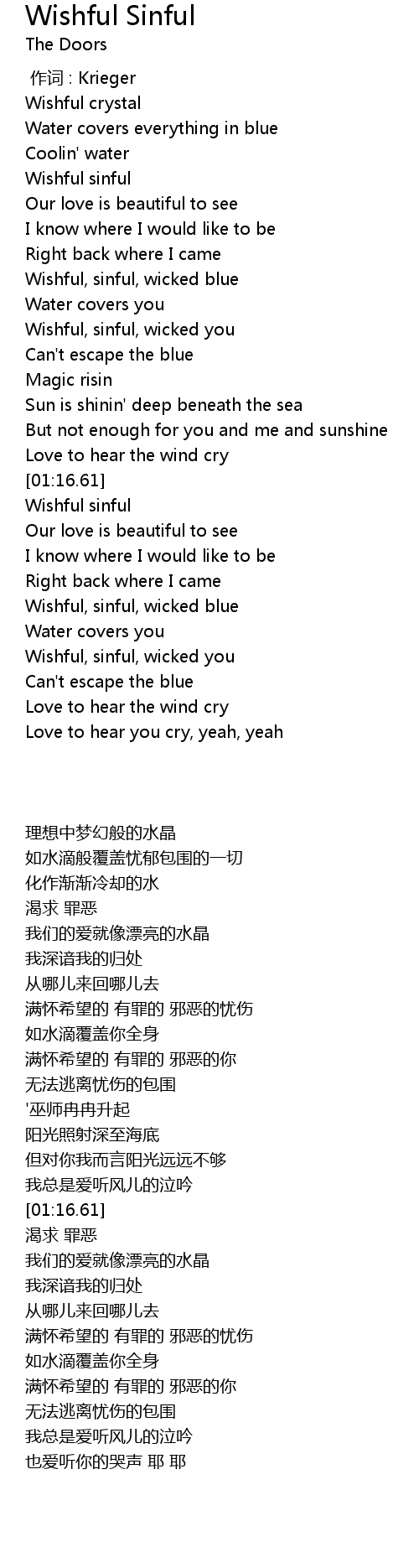 | [00:15.79] | Wishful sinful |