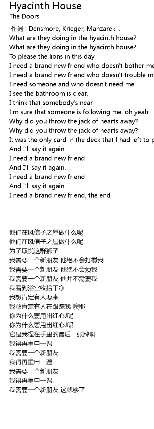 | [00:00.00] | 作词 : Densmore, Krieger, Manzarek ... |