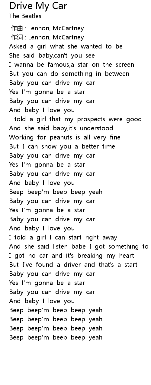 | [02:20.96] | Beep beep'm beep beep yeah |