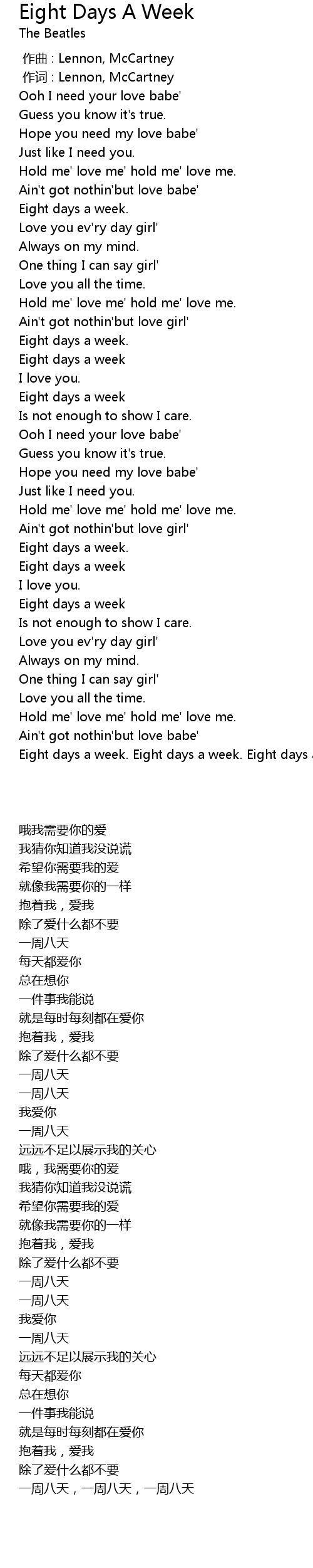 | [02:23.740] | Eight days a week. Eight days a week. Eight days a week. |