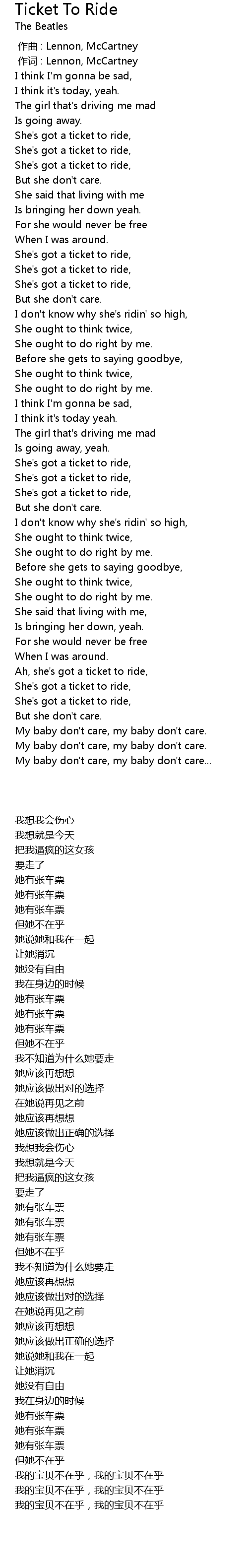 | [00:00.00] | zuò qǔ : Lennon, McCartney |