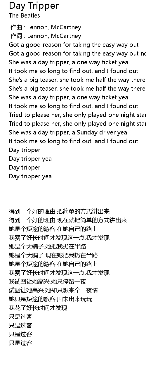 | [02:30.990] | Day tripper |
