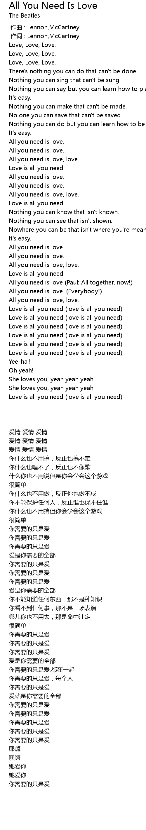 | [02:29.00] | All you need is love (Paul: All together, now!) |