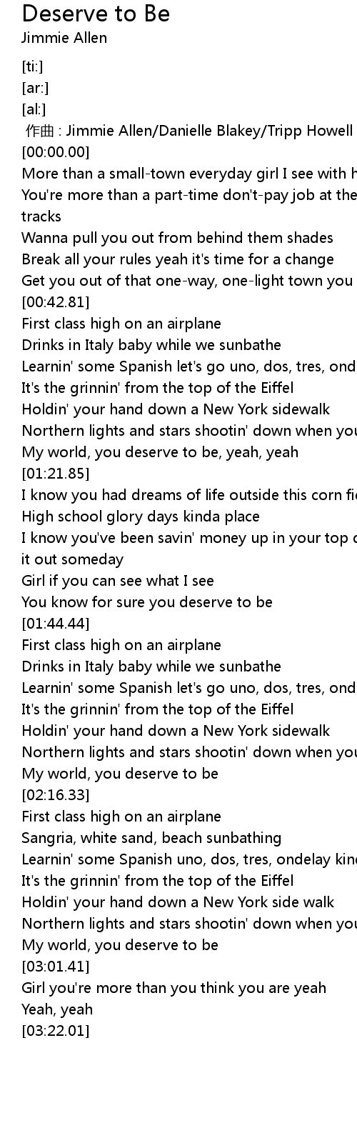 | [00:00.000] | zuo qu : Jimmie Allen Danielle Blakey Tripp Howell |