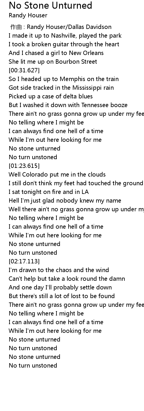 | [02:08.031] | No stone unturned |