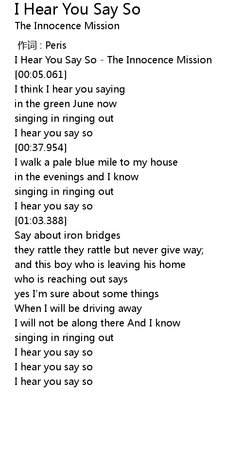| [00:01.094] | I Hear You Say So The Innocence Mission |