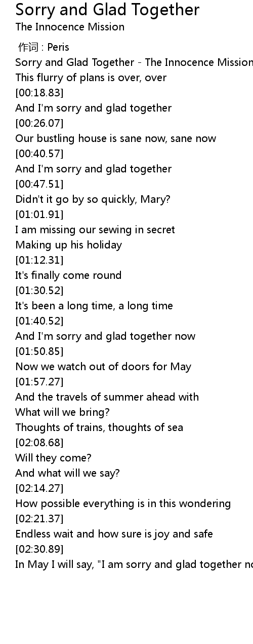 | [00:00.73] | Sorry and Glad Together The Innocence Mission |