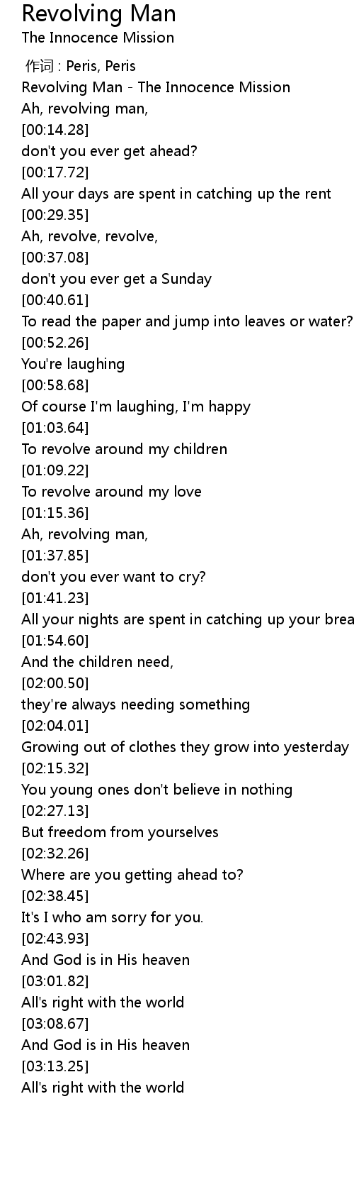 | [00:01.15] | Revolving Man - The Innocence Mission |