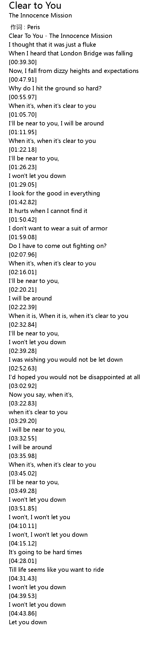 | [00:00.57] | Clear To You - The Innocence Mission |