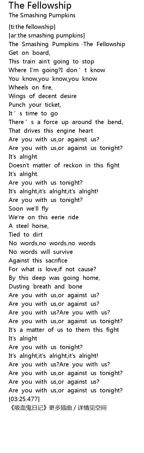 | [00:00.424] | The Smashing Pumpkins -The Fellowship |