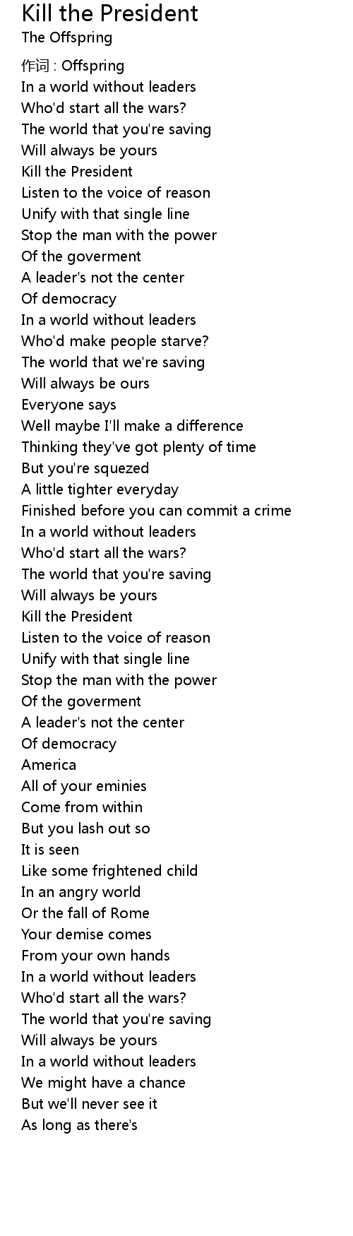 | Song | Kill the President |