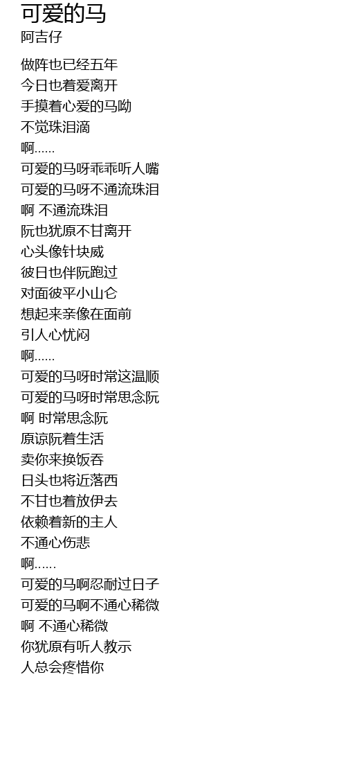 | [00:45.80] | 可爱的马呀不通流珠泪 |