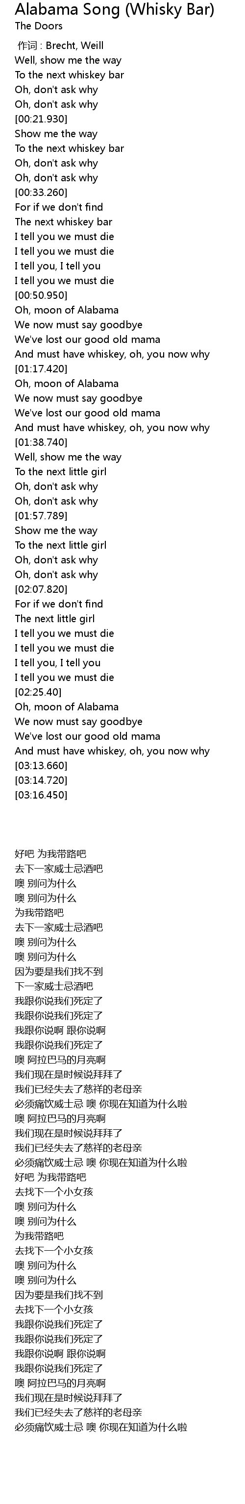 | [00:00.00] | 作词 : Brecht, Weill |
