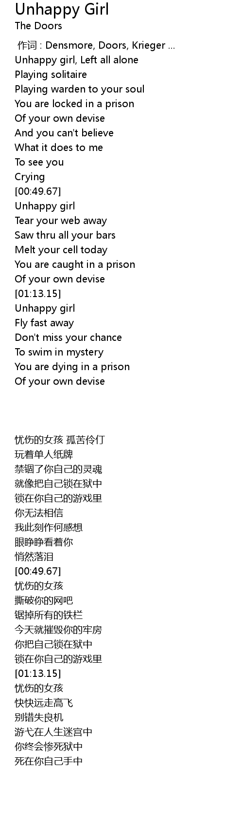 | [00:00.00] | 作词 : Densmore, Doors, Krieger ... |