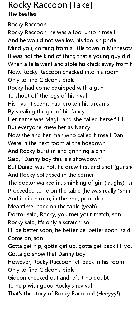 That's the story of Rocky Raccoon! (Heeyyy!) |