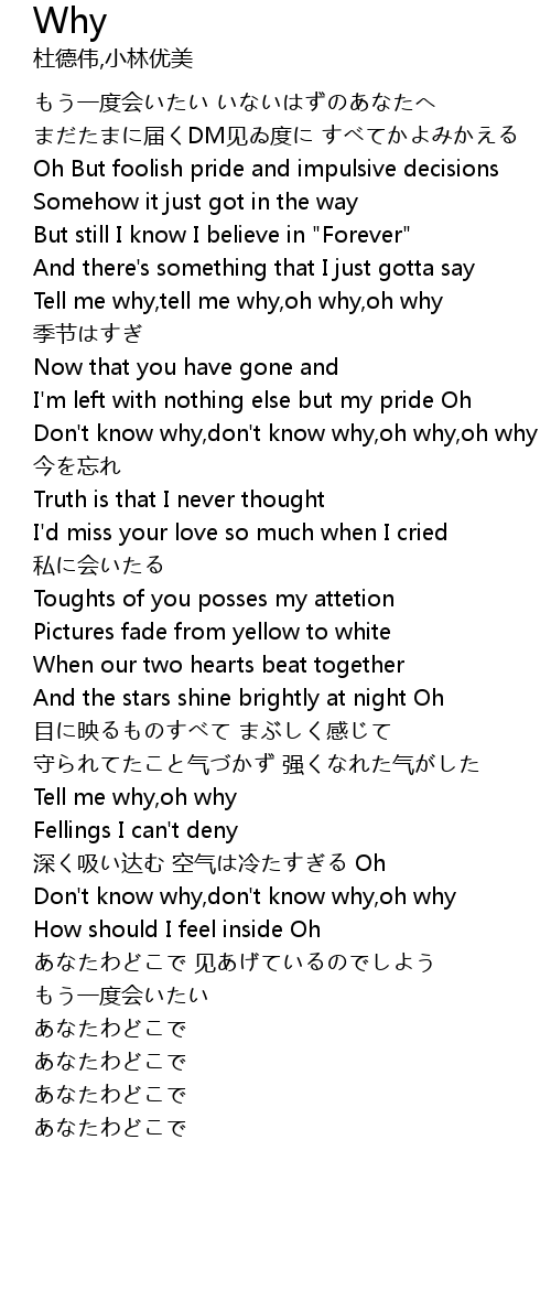 | [00:55.000] | Tell me why, tell me why, oh why, oh why |