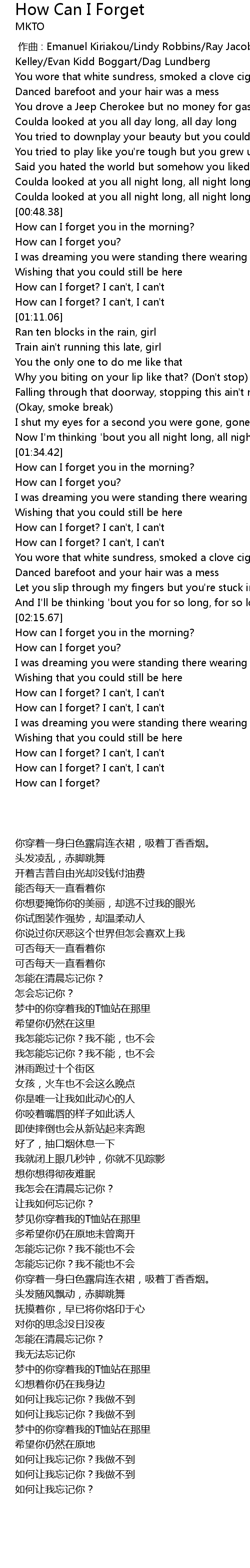 | [02:34.50] | How can I forget? I can' t, I can' t |