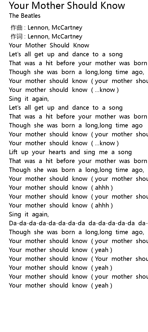 | [02:07.92] | Your mother should know (Your mother should...) |