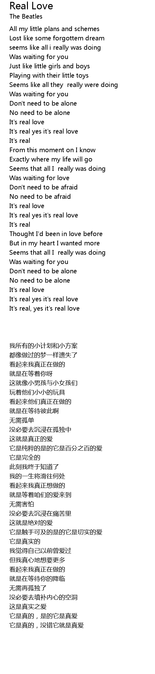 Real Love Lyrics
