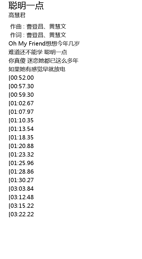 | [00:01.00] | 作词 : 曹登昌、黄慧文 |