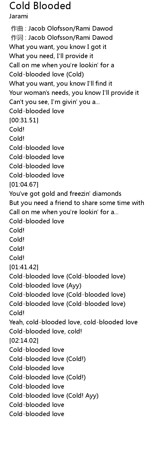 | [02:18.17] | Coldblooded love Cold! |