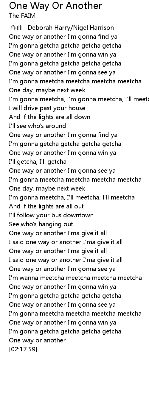 | [00:15.50] | One way or another I'm gonna see ya |