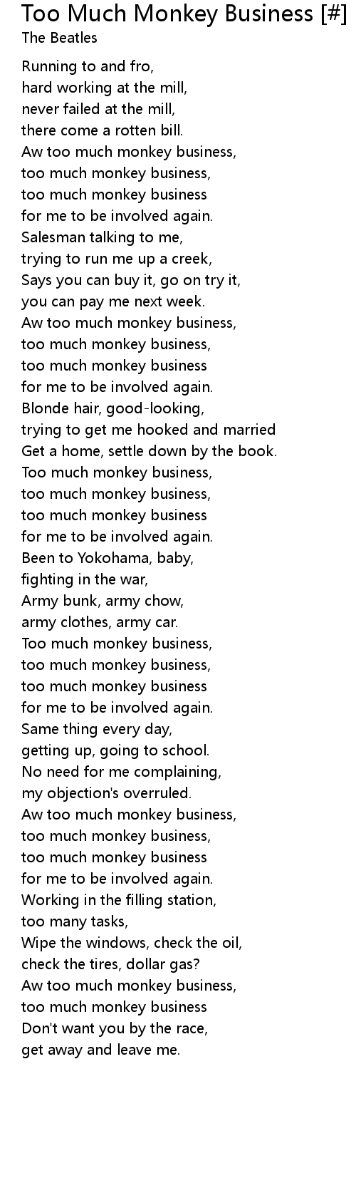 Too much monkey business, |
