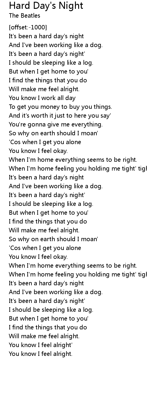 It's been a hard day's night |