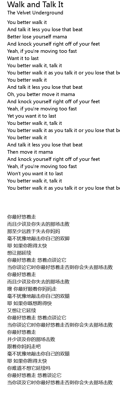 You better walk it as you talk it or you lose that beat |