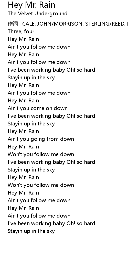 | 作词 : CALE, JOHN/MORRISON, STERLING/REED, LOU/TUCKER, MAUREEN | |