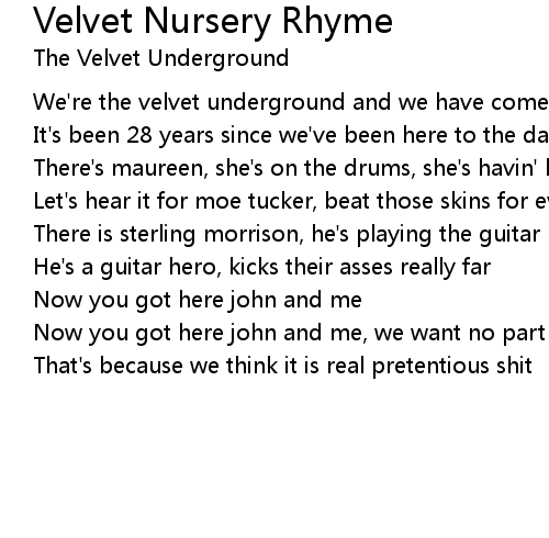 | We're the velvet underground and we have come to play | |