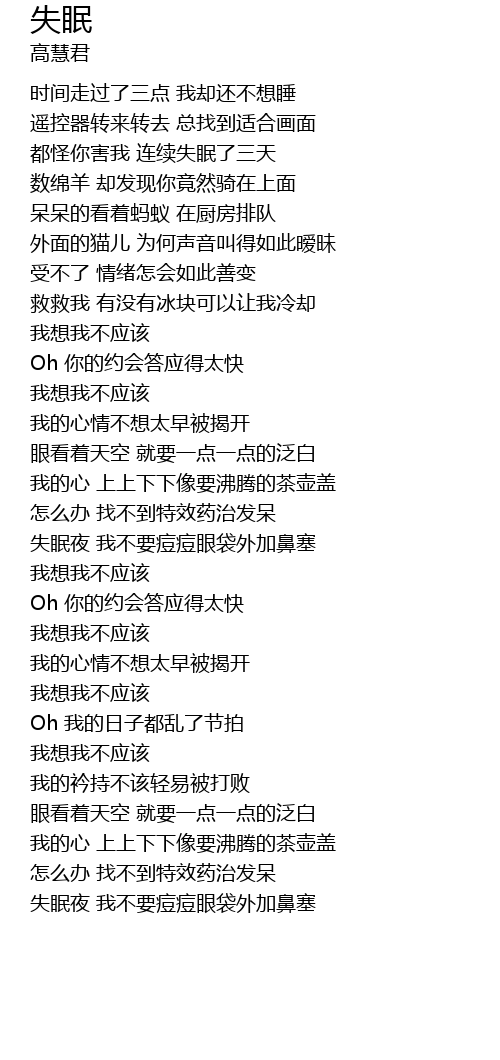 | [02:59.02] | 失眠夜 我不要痘痘眼袋外加鼻塞 |