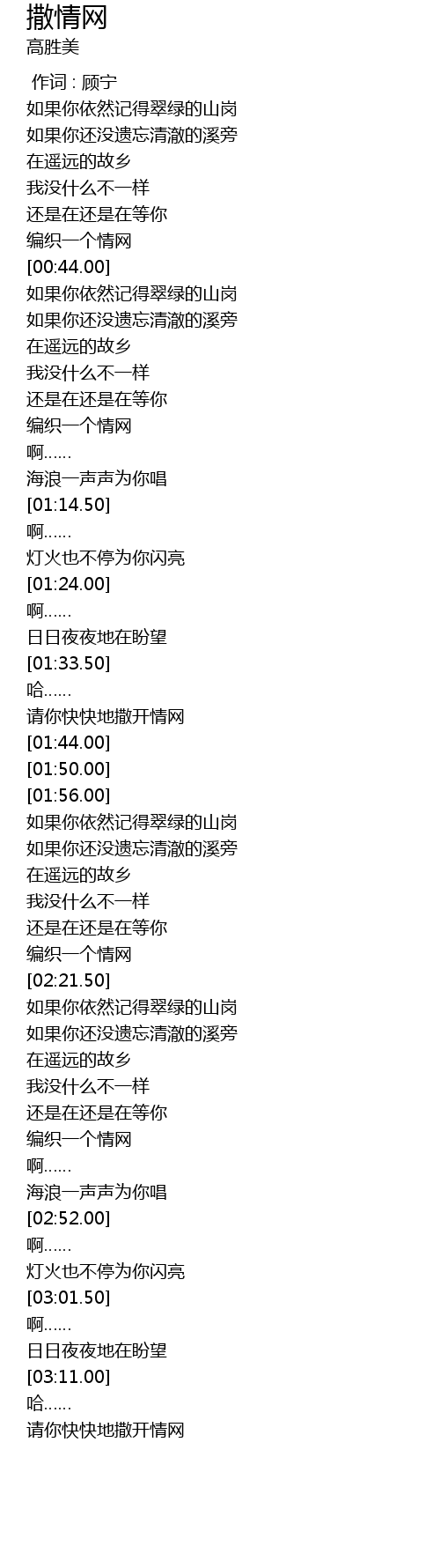 | [01:37.98] | 请你快快地撒开情网 |