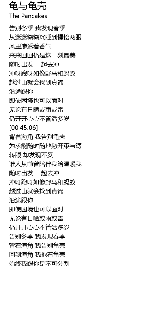 | [01:01.36] | 背着海角 我告别龟壳 |