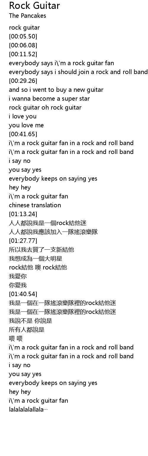 | [00:18.80] | everybody says i' m a rock guitar fan |