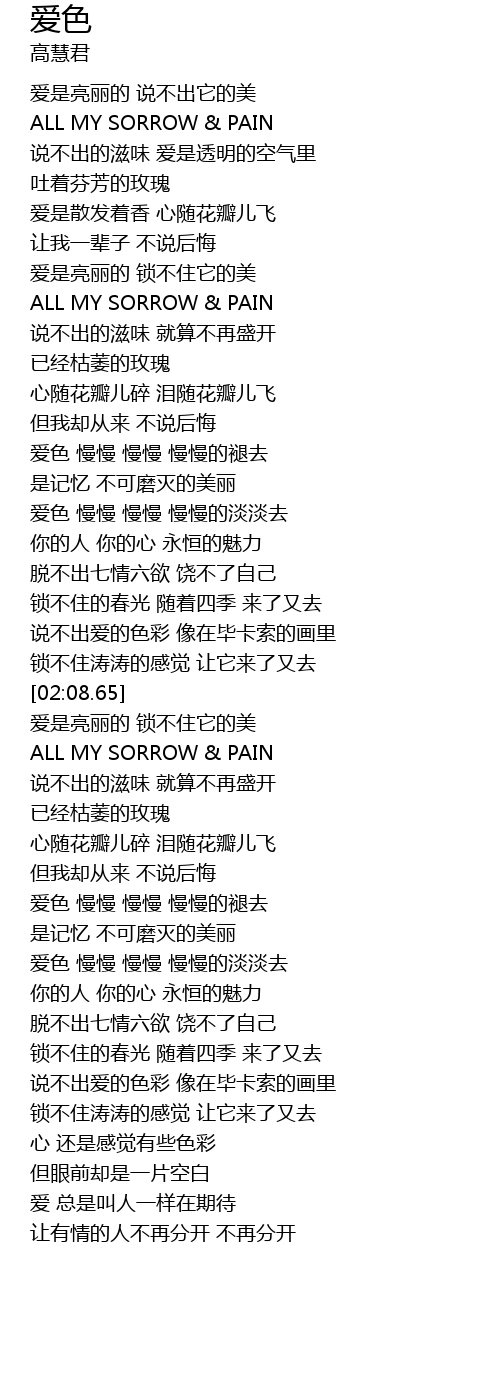 | [01:23.21] | 爱色 慢慢 慢慢 慢慢的淡淡去 |