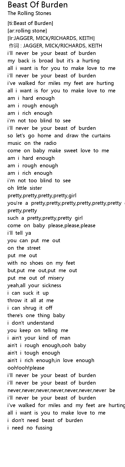 | [00:00.00] | 作词 : JAGGER, MICK/RICHARDS, KEITH |