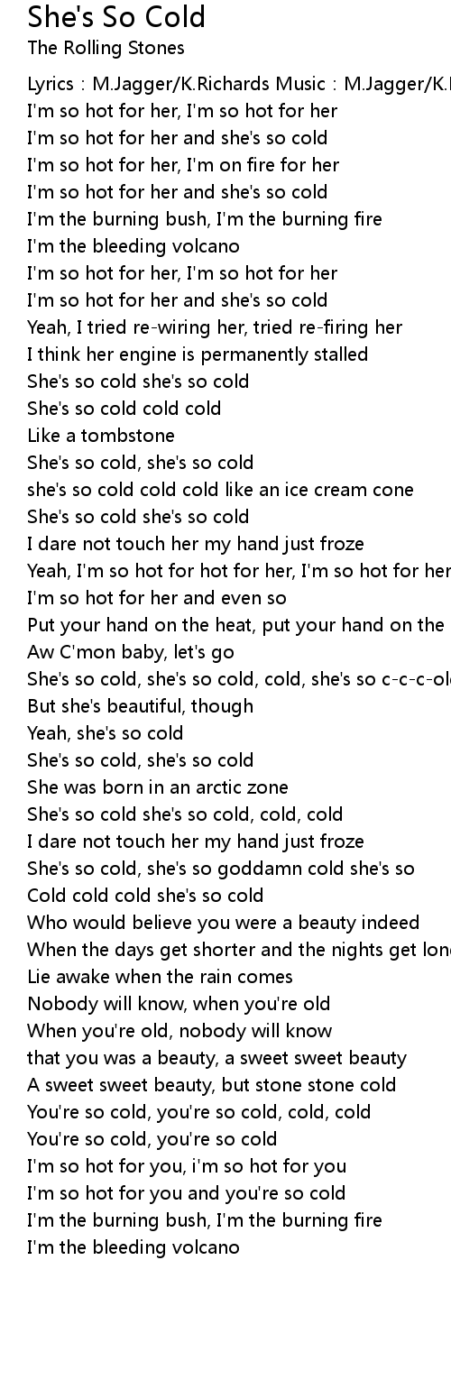 | She' s so cold, she' s so cold, cold, she' s so cccold | |