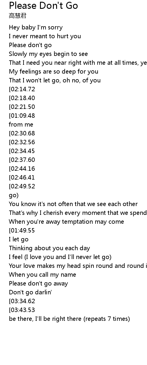 | [03:33.49][03:34.62][03:35.69][03:38.14][03:39.82] | Don't go |