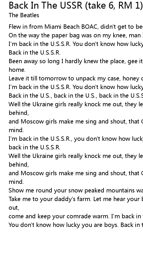 Back in the U.S., back in the U.S., back in the U.S.S.R. |
