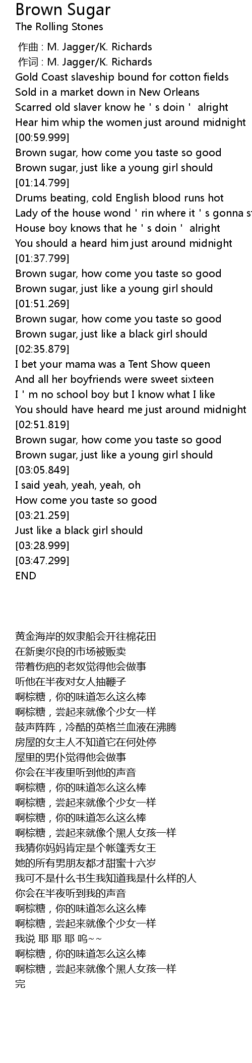 | [00:01.00] | 作词 : M. Jagger/K. Richards |