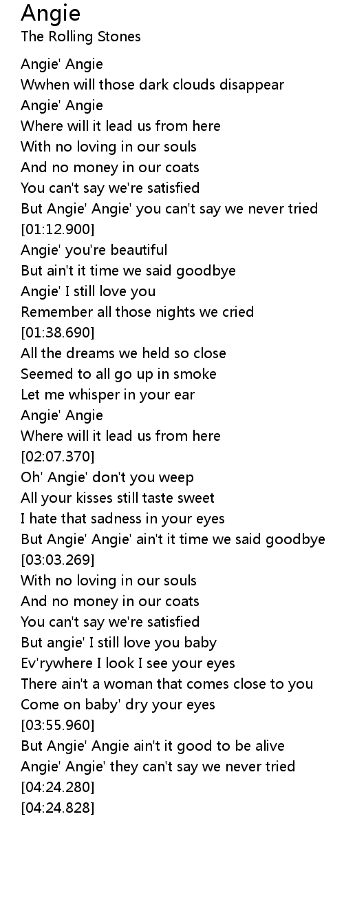 | [02:48.497] | But Angie' Angie' ain't it time we said goodbye |