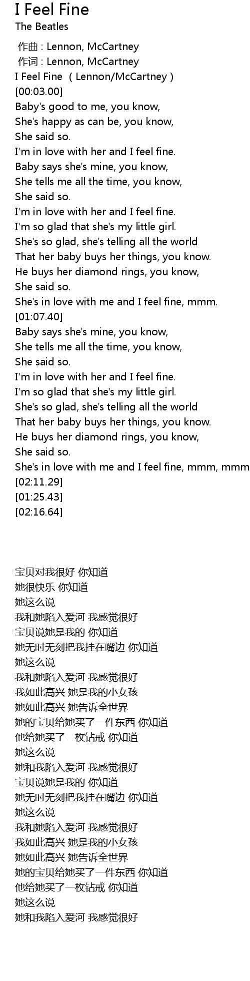 | [00:00.00] | I Feel Fine (Lennon/McCartney) |