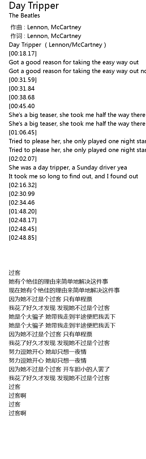| [02:37.86][02:30.99] | Day tripper |