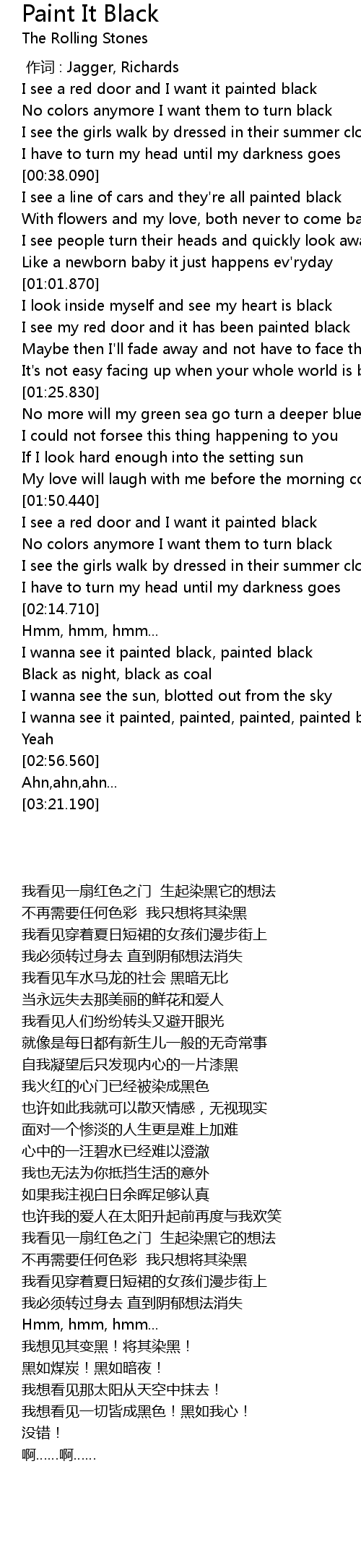 | [02:50.490] | I wanna see it painted, painted, painted, painted black |