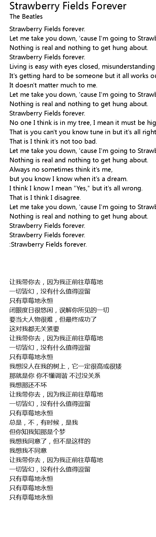 Let me take you down, 'cause I'm going to Strawberry Fields. |