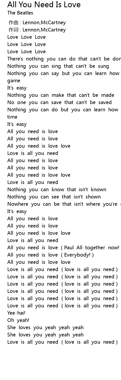 | [02:28.341] | All you need is love (Paul All together now!) |