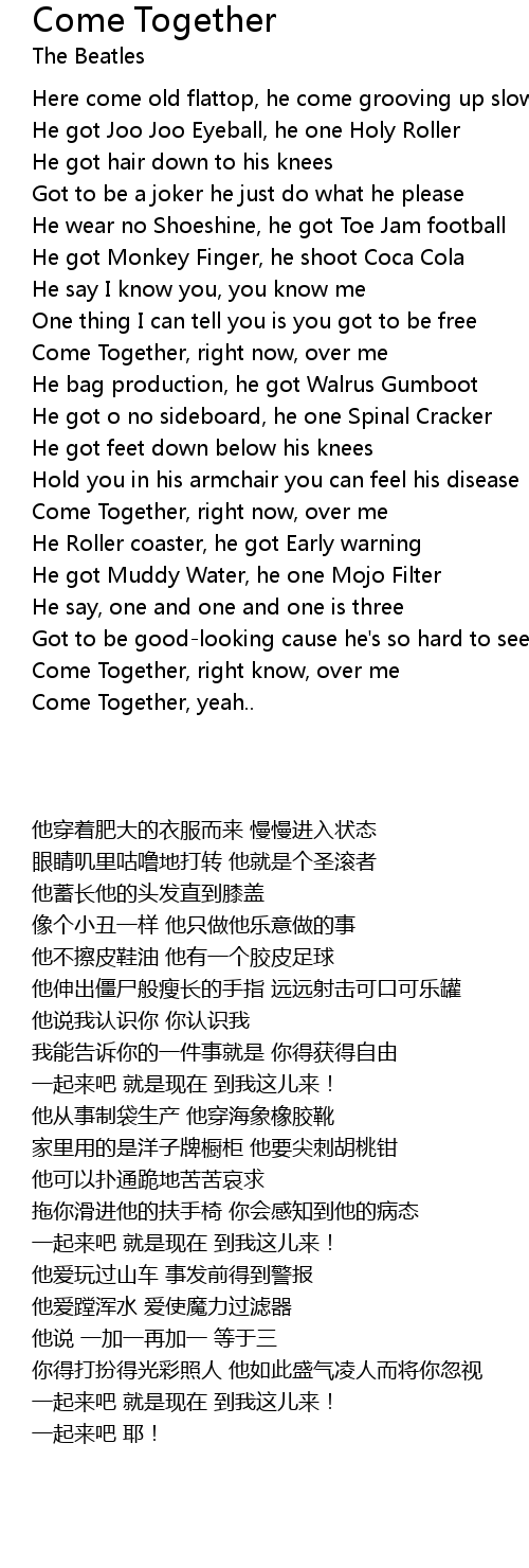 Come Together, right know, over me |