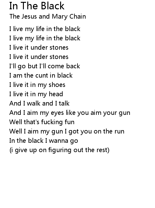 | I live my life in the black | |