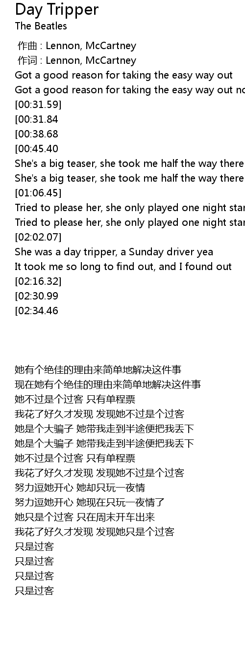 | [02:37.86][02:30.99] | Day tripper |